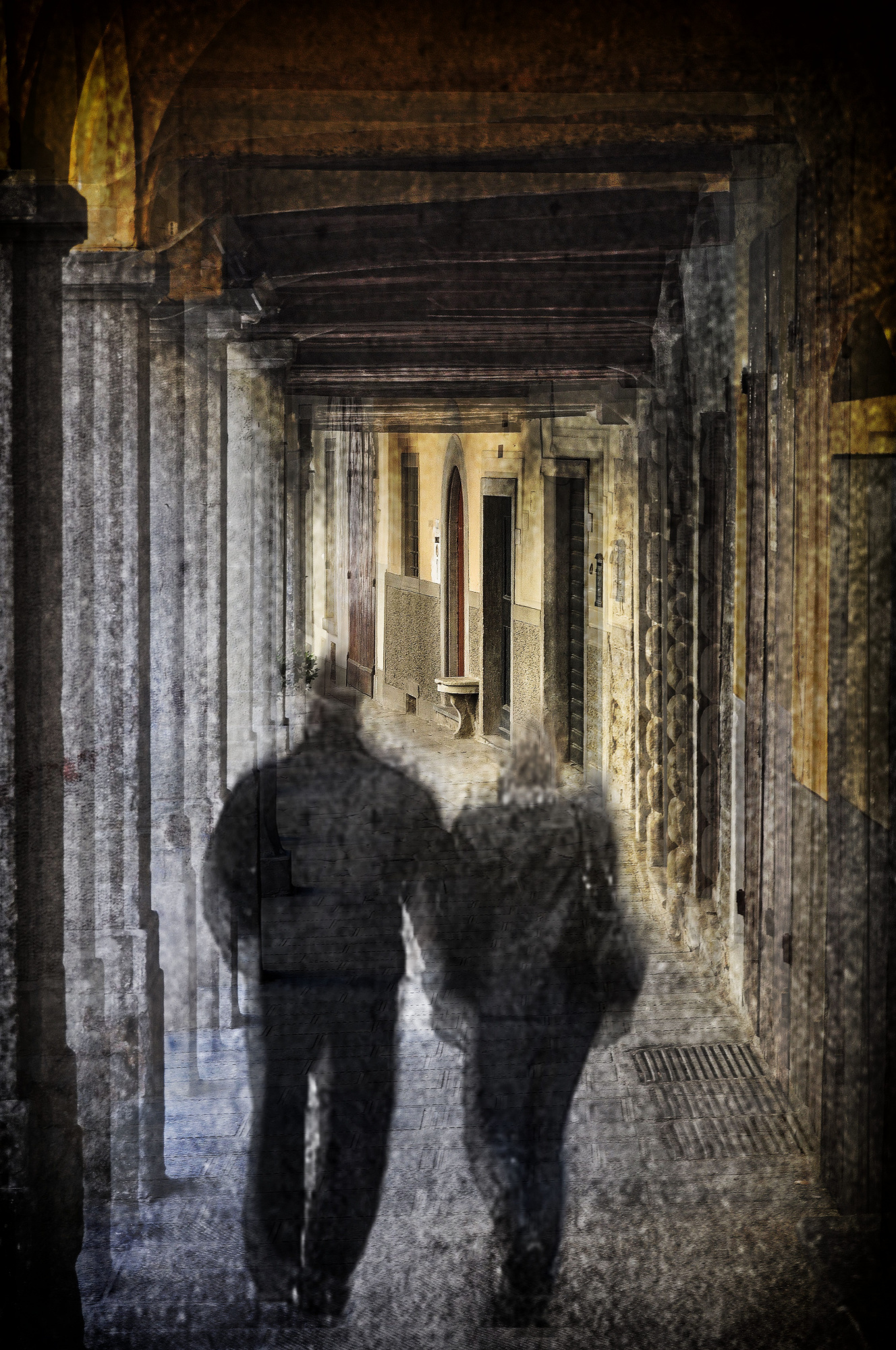 I also can insert external elements, such as people or objects. This operation often creates surreal results that I love very much. Finally, depending on the type of subject, I can insert scratches or dirty filters between one level and another to give the resulting drama and material consistency.